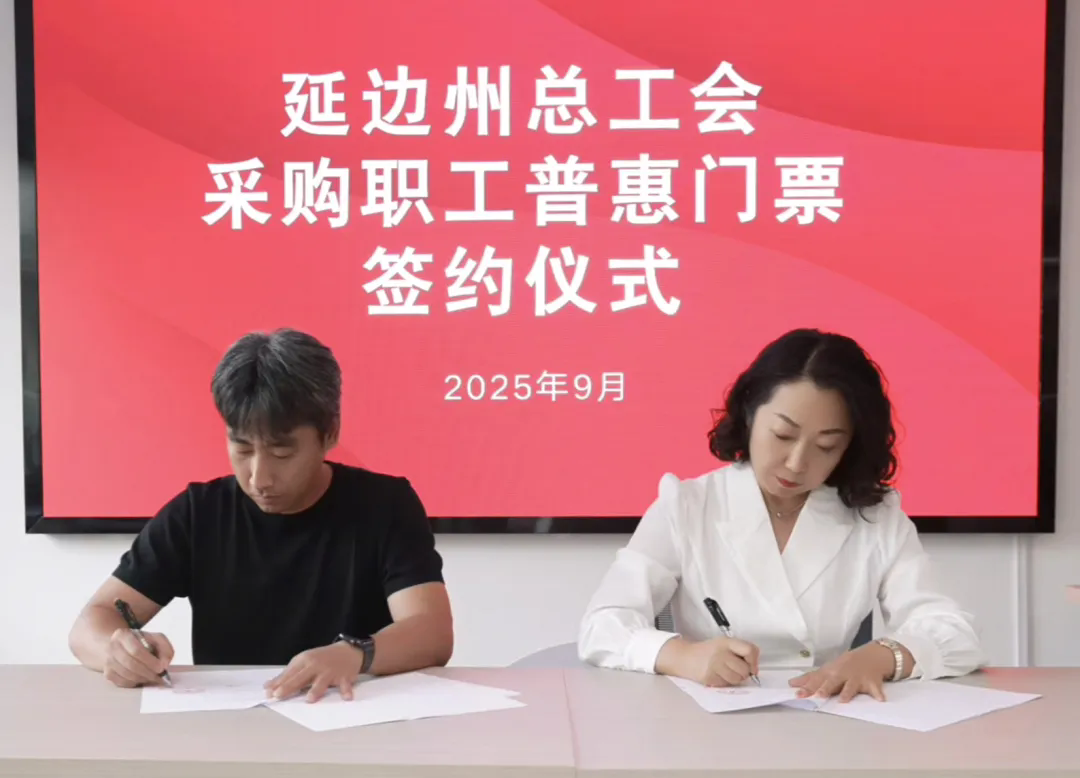 星期四09月11日延邊州總工會舉行采購職工普惠門票簽約儀式 助力職為慶祝中華全國總工會成立100周年,全面落實吉林省總工會關(guān)于構(gòu)建全時空職工高品質(zhì)生活服務(wù)體系指導(dǎo)精神,豐富拓展全州職工思想政治引領(lǐng)體系,根